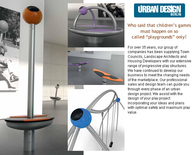 The URBAN DESIGN BERLIN playpoints are climbers or rockers or twisters. But they are also very nice pieces of public design. And they are sculptural. Above all this, in some cases not everyone will even know instantly exactly what they are. The fun part can and will be discovered. Just looking at them makes one think "wow !".